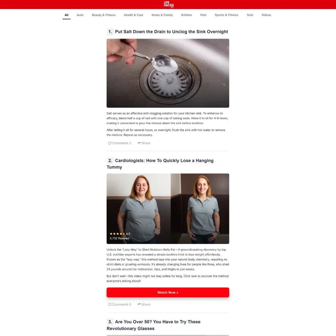 LifeHacks101 is an affiliate-based blog website sharing practical tips, hacks, and product recommendations to help readers improve daily life. The site was built using WordPress and Elementor, featuring a clean, responsive layout optimized for content presentation and affiliate marketing.